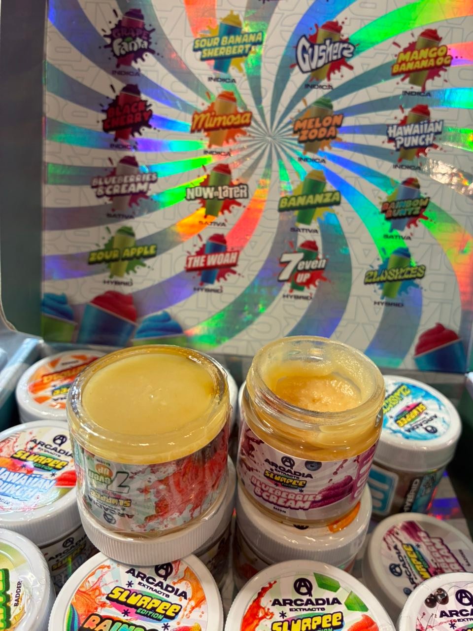 Arcadia Extracts understands that the packaging of Slurpee Edition Badder is more than just a container. The design and functionality ensures the premium cannabis concentrate remains authentic and fresh. The packaging is designed to preserve the aroma and flavor, showcasing the quality within. Thoughtful details, such as airtight seals and protective materials, protect the badder’s consistency and cannabinoids and terpenes, so the user receives the best cannabis experience possible. Arcadia Extracts prioritizes function and form, so this design ensures customer satisfaction.